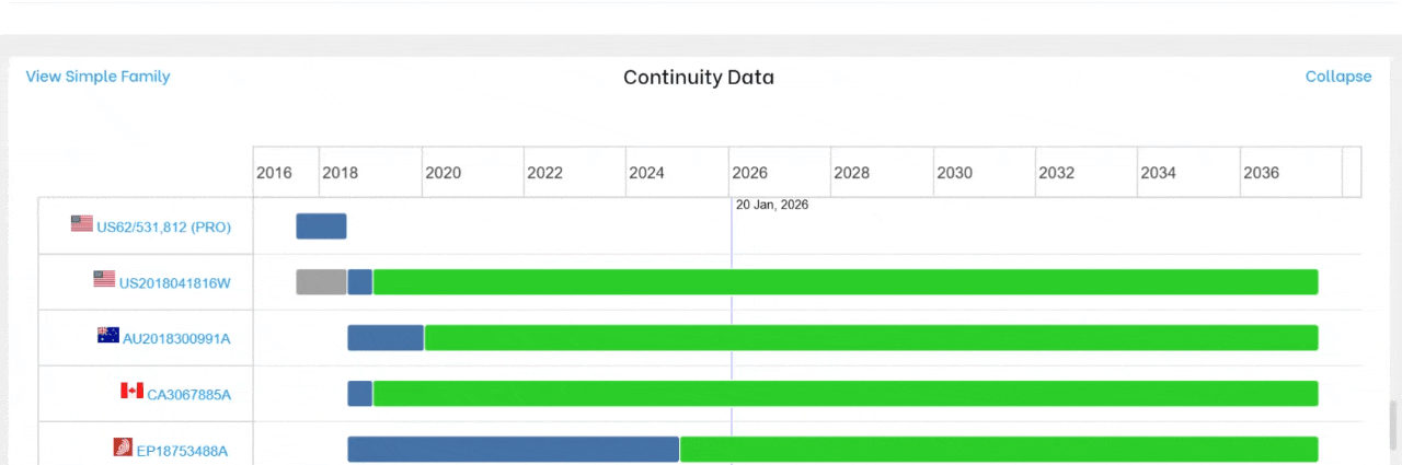 Explore the patent family in Classic, Modern, or Gantt Chart formats to suit your analysis needs.